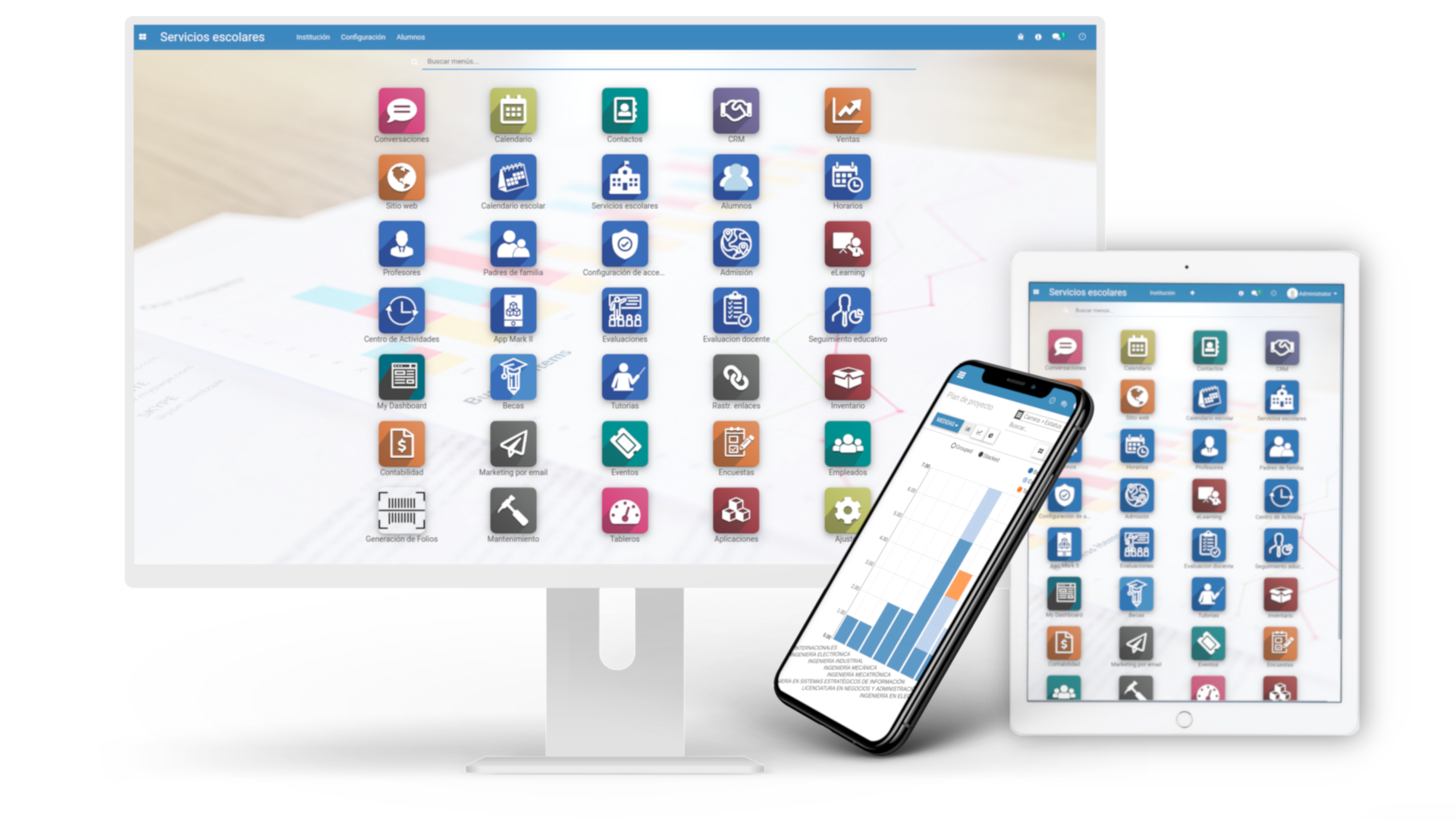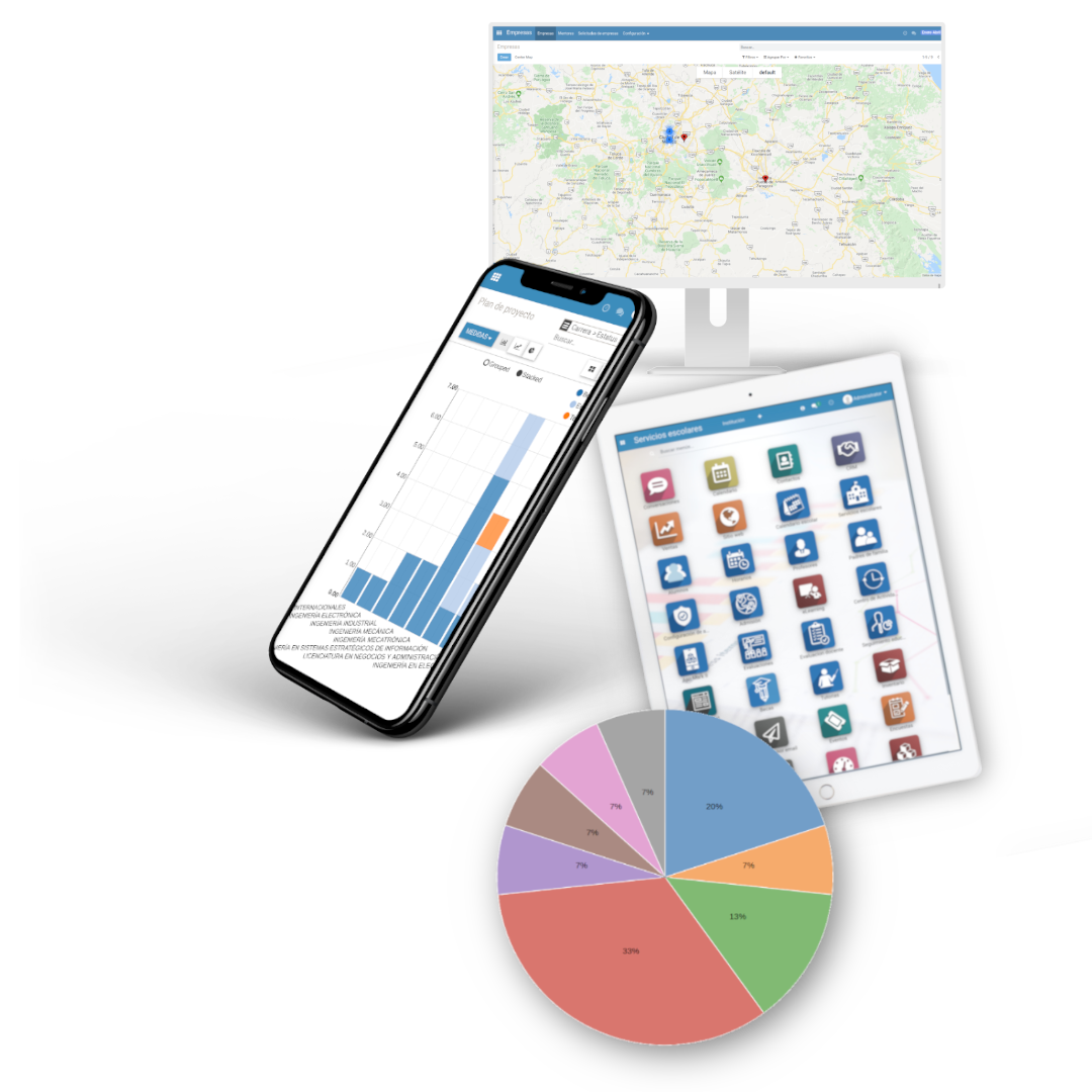 Adicionalmente, podemos integrar varios sistemas de educación dual con una base de datos centralizada y un panel de control para administrar los diferentes modelos, así como los usuarios, reportes e indicadores.